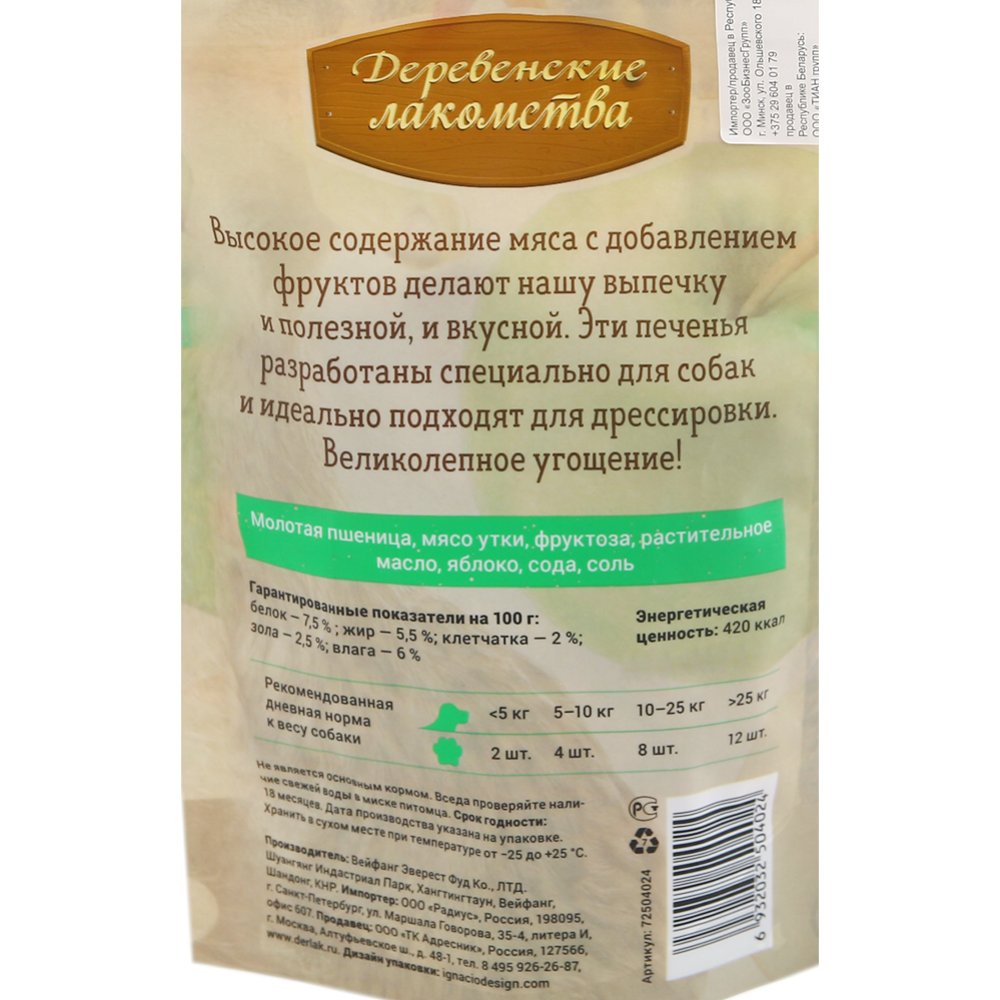 | Краткое описание | Печенье с добавлением свежего мяса утки. Благодаря идеальному сочетанию вкусов и размеру это лакомство прекрасно подойдёт для дрессировки. |