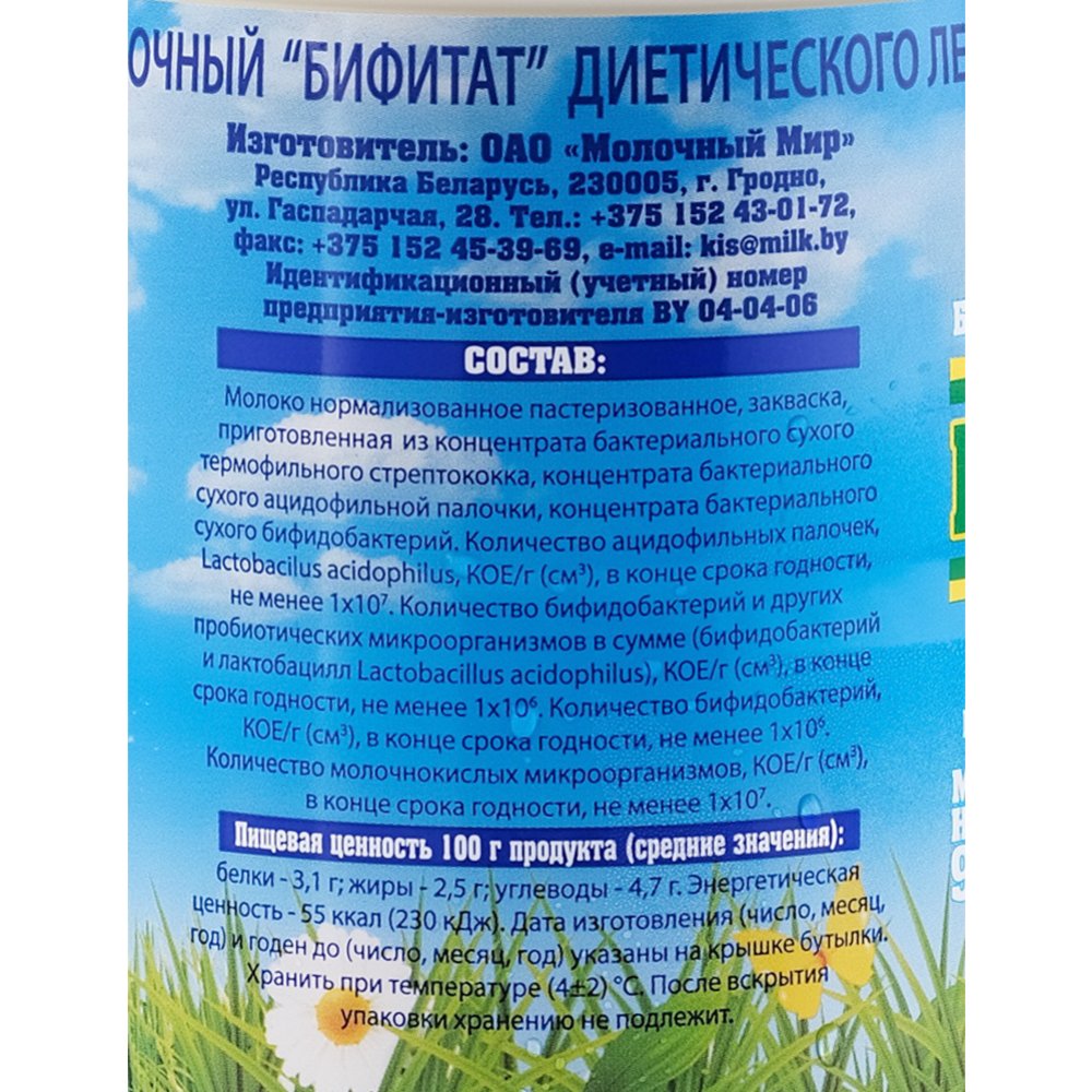| Производитель | ОАО «Молочный Мир» 230005, г. Гродно, ул. Гаспадарчая, 28, Республика Беларусь. |