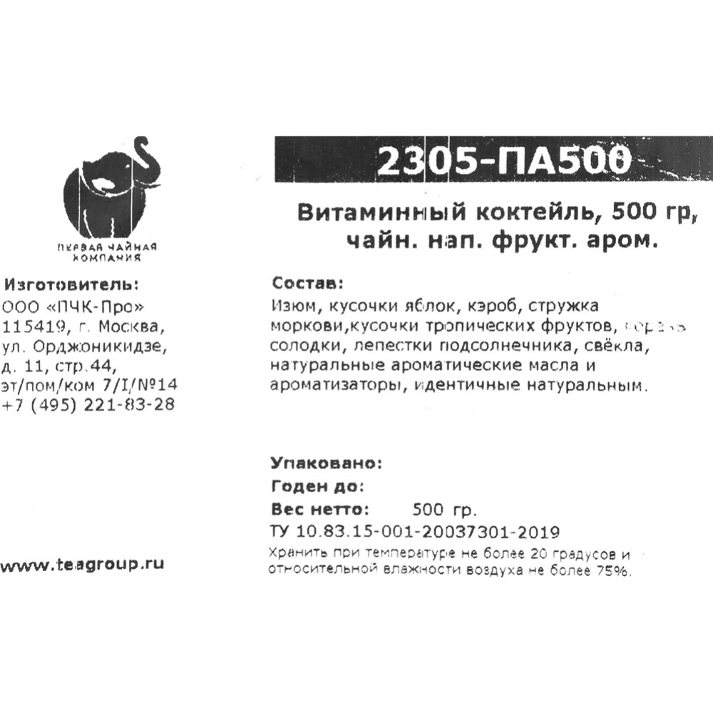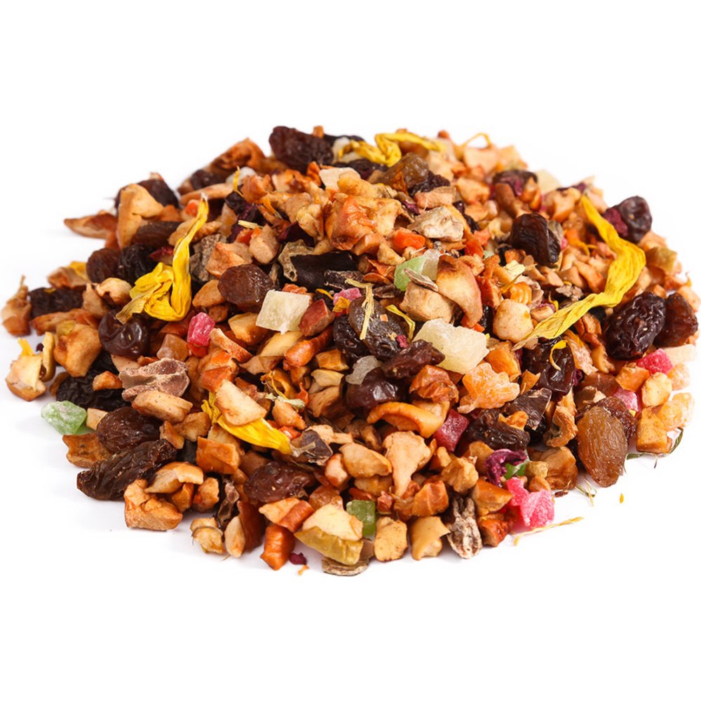 | Состав | изюм, кусочки яблок, кэроб, стружка моркови, кусочки тропических фруктов, корень солодки, лепестки подсолнечника, свекла, натуральные ароматические масла и ароматизаторы, идентичные натуральным. |