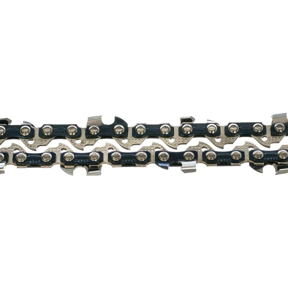| Краткое описание | Цепь предназначена для профессионалов, а также для коммерческого использования. Зуб пильной цепи имеет треугольную форму с двойными режущими вершинами, что позволяет достичь исключительной производительности наряду с износостойкостью и простотой в использовании по сравнению с цепями с закругленными углами. Конструкция скошенных ограничителей глубины пропила снижает вибрацию ручек на 25% и более. Специальные пазы (канавки) на хвостовиках соединительных (ведущих) звеньев обеспечивают дополнительную смазку шарниров цепи. |