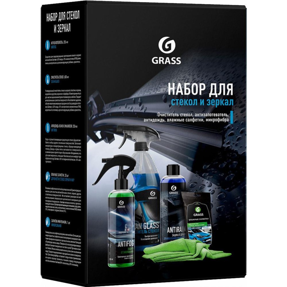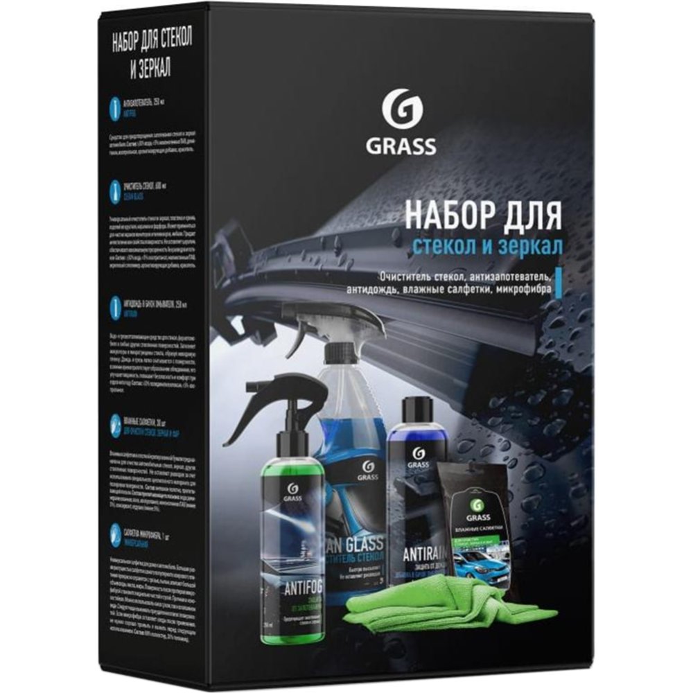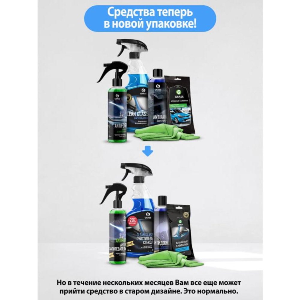| Краткое описание | В его состав входят: Средство для предотвращения запотевания стекол и зеркал "Antifog" (флакон 250 мл). Средство для очистки стекол и зеркал "Clean glass" (флакон 600 мл) - универсальный очиститель для стекол, зеркал, пластика и хрома, изделий из хрусталя, керамики и фарфора. Средство для стекол и зеркал "Антидождь" в бачок омывателя (флакон 250мл) - водо- и грязеотталкивающее средство для стекол, фар автомобиля и любых других стеклянных поверхностей. Заполняет микропоры и микротрещины стекла, образуя невидимую пленку. Влажные салфетки из плотной крепированной бумаги предназначены для очистки автомобильных стекол, зеркал, других стеклянных поверхностей. Не оставляют разводов за счет использования специального целлюлозного материала для полировки поверхности (упаковка 30 штук). Салфетка из микрофибры 1 штука, размер 30 х 30 см. |