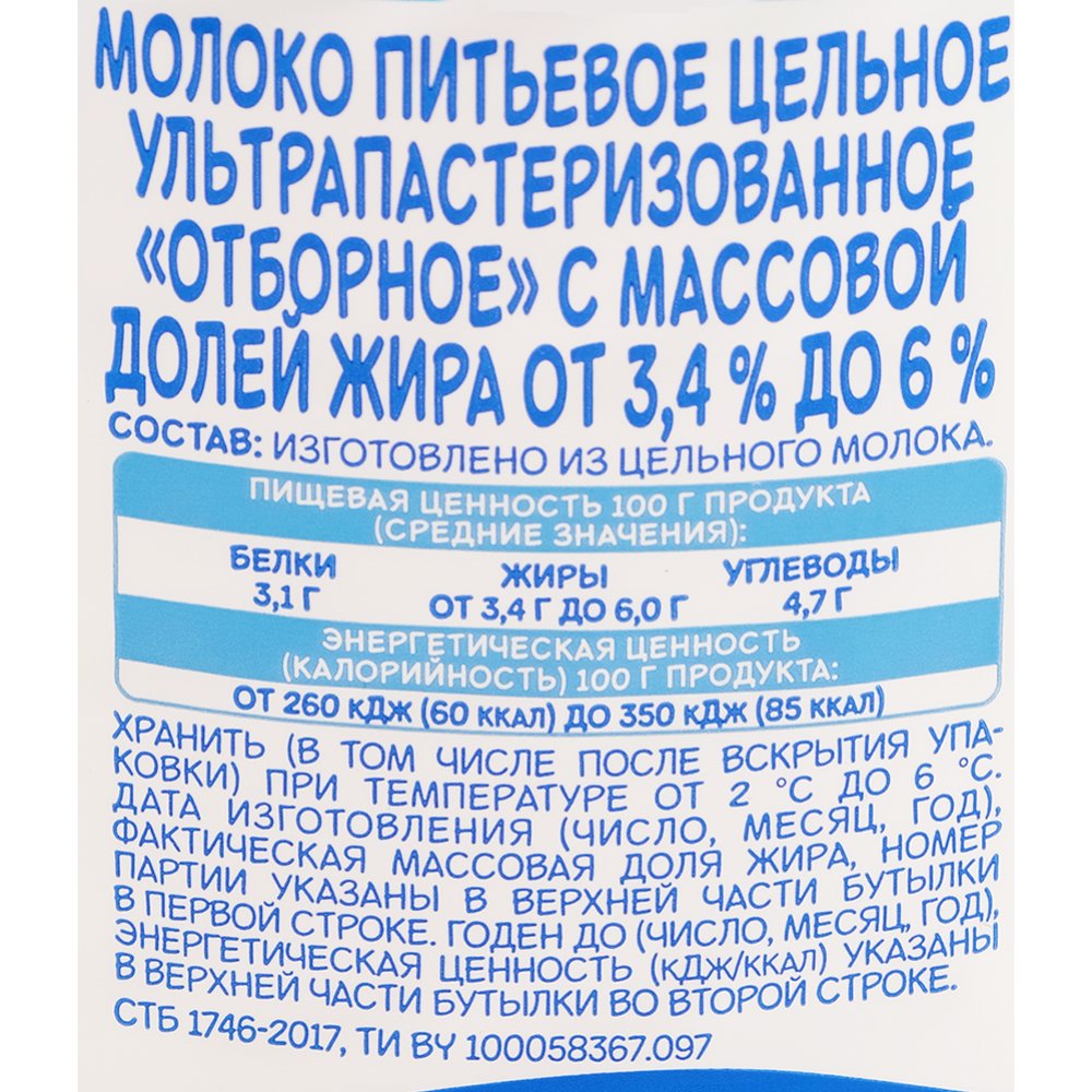 | Жирность, % | от 3.4 до 6 |