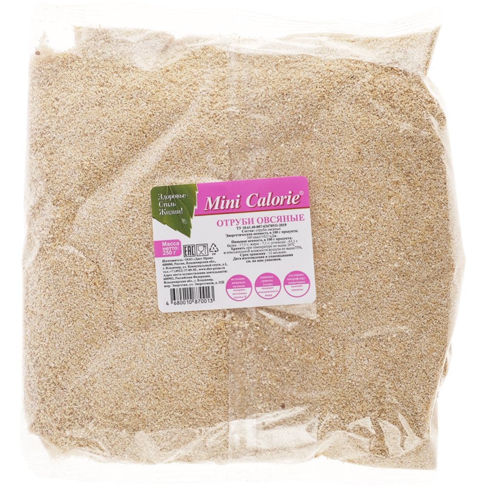 | Краткое описание | "Овсяные отруби содержат в своем составе как растворимую, так и нерастворимую клетчатку. Содержат множество минералов, богаты витаминным составом. Отруби не только очищают кишечник, но еще и облегчают работу другим органам пищеварения. В результате регулярного употребления метаболизм улучшается. Применение овсяных отрубей поможет избавиться от чувства тяжести в желудке, справиться с запорами. Также благодаря употреблению овсяных отрубей: кожа, волосы и ногти насыщаются необходимыми минералами; выводятся токсины и избыток холестерина; стабилизируется уровень сахара в крови; нормализуется уровень гормонов и работа печени; расщепляется избыточный жир.Отруби овсяные можно применять как добавку при приготовлении различных блюд и выпечки." |