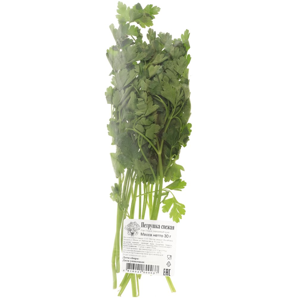 | Краткое описание | Петрушка содержит бета-каротин, богата витаминами группы В, А, РР и Е. В составе листьев и корней много железа, натрия, кальция, фосфора, магния и цинка. Эта зелень укрепляет наш организм и помогает бороться с вредными бактериями. Петрушку добавляют в салаты, первые, вторые блюда. Веточкой петрушки украшают смузи, супы-пюре, бутерброды, канапе, нарезки. Петрушка может быть одним из ингредиентов для приготовления зеленых коктейлей овощных соков. |