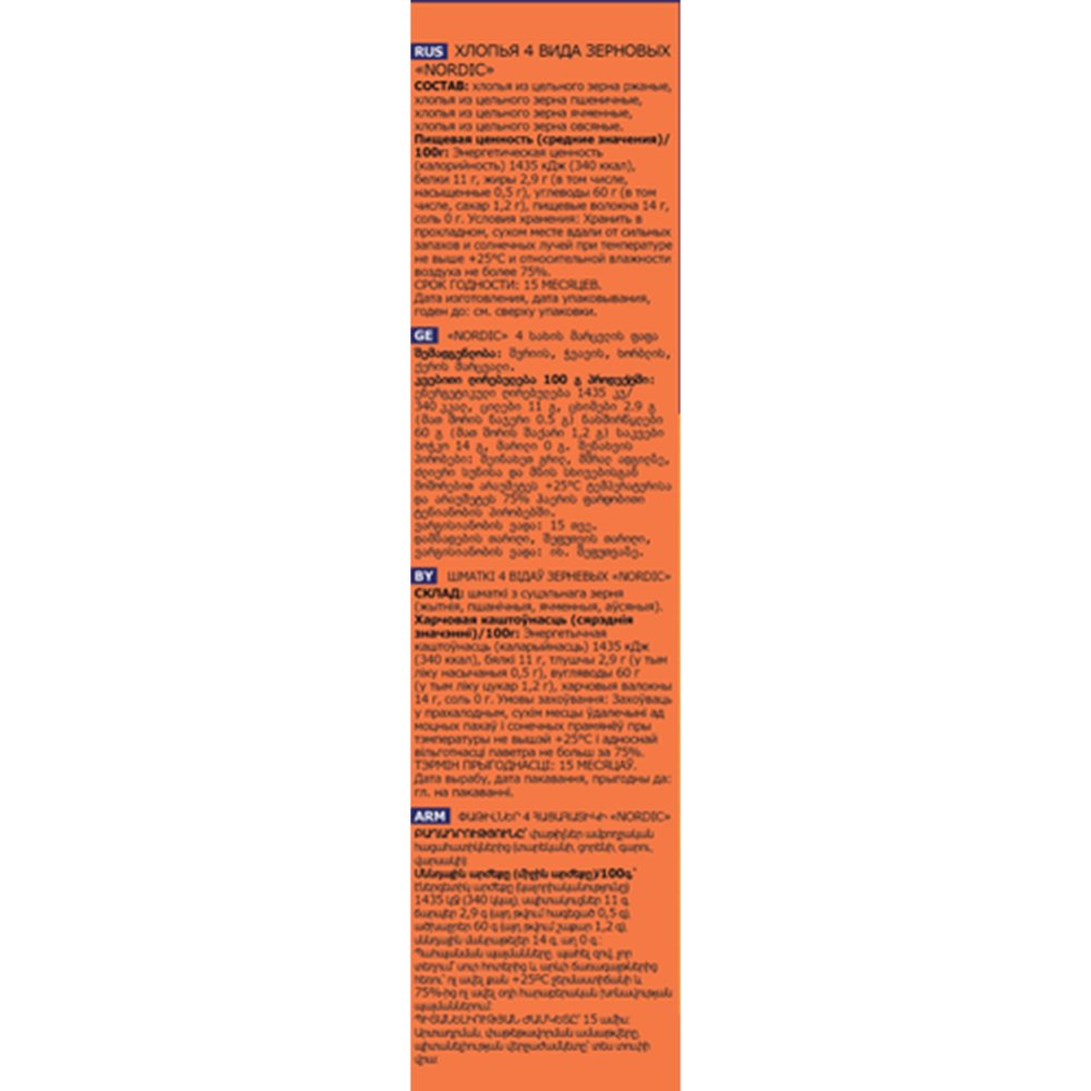 | Состав | хлопья из цельного зерна (ржаные, пшеничные, ячменные, овсяные). |