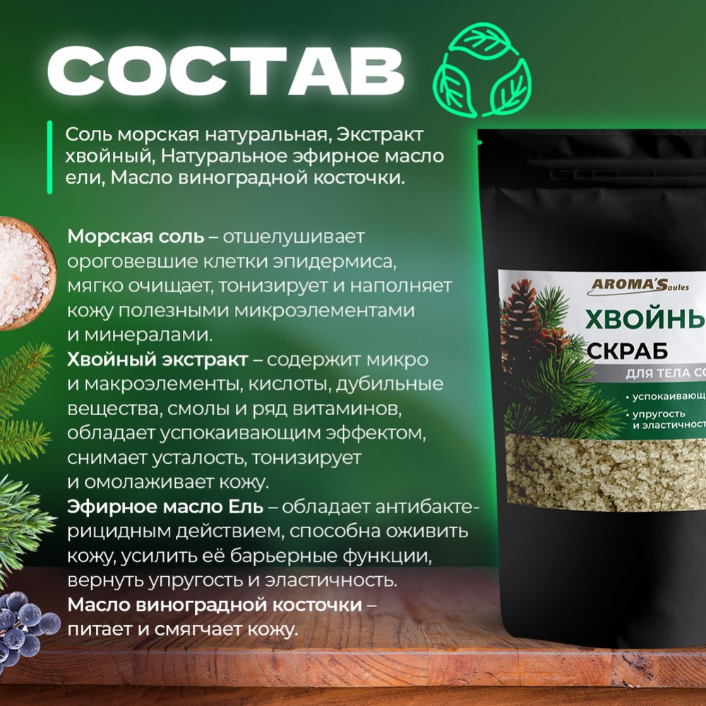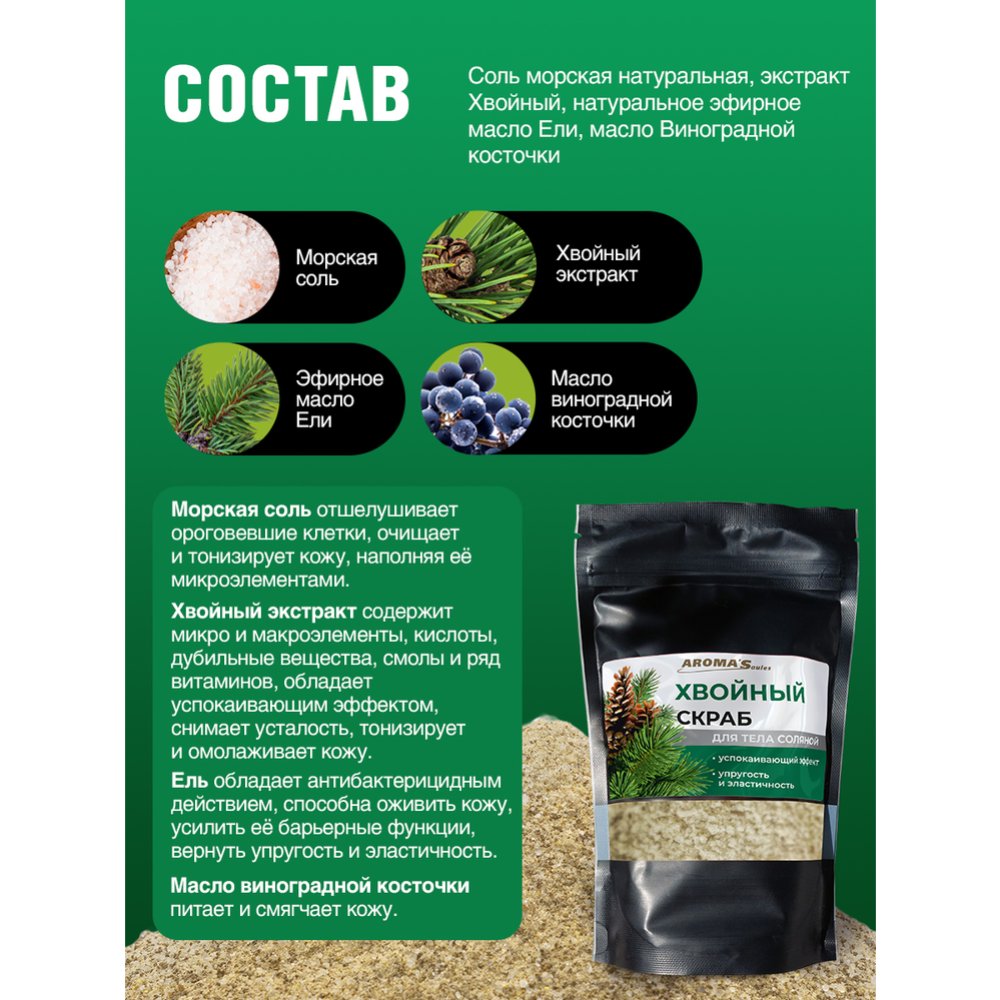 | Состав | соль морская натуральная, экстракт хвойный, натуральное эфирное масло ели, масло виноградной косточки. |