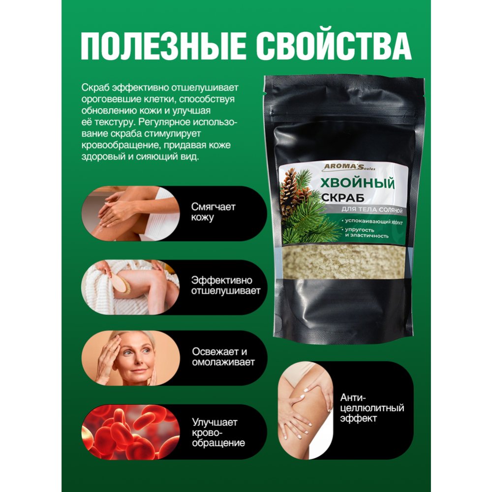 | Краткое описание | Морская соль — эффективно и деликатно отшелушивает ороговевшие клетки эпидермиса, мягко очищает, тонизирует и наполняет кожу полезными микроэлементами и минералами, улучшает кровообращение и питание клеток кожи, способствует выведению шлаков и излишков воды. Хвойный экстракт — содержит микро и макроэлементы, кислоты, дубильные вещества, смолы и ряд витаминов, обладает успокаивающим эффектом, снимает усталость, тонизирует и омолаживает кожу. Ель — обладает антибактерицидным действием, способна оживить кожу, усилить её барьерные функции, вернуть упругость и эластичность. Масло виноградной косточки — питает и смягчает кожу. |
