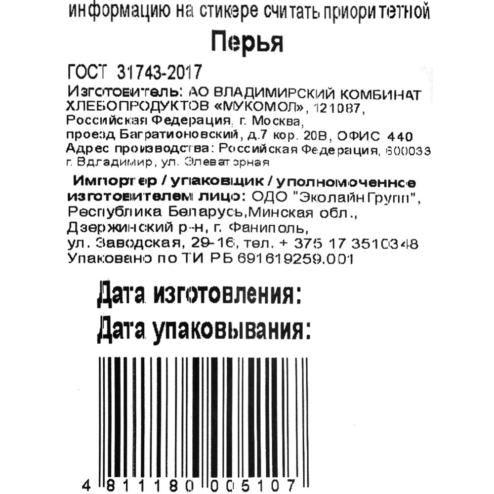 | Производитель | АО «Владимирский комбинат хлебопродуктов «Мукомол», 121087, г. Москва, проезд Багратионовский, д. 7, корп. 20В, оф. 440, Россия. |