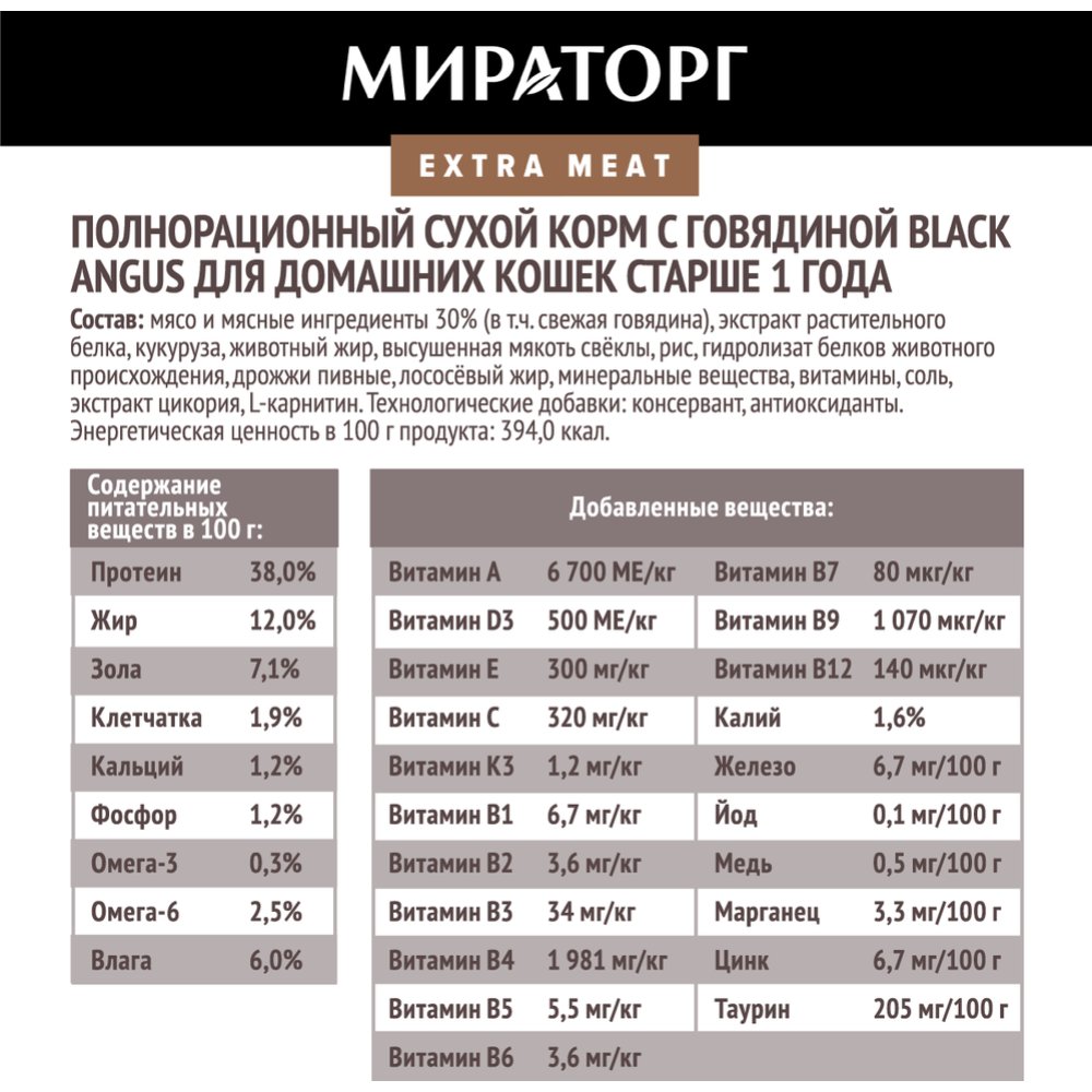 | Краткое описание | Домашние кошки обычно малоактивны и предпочитают спокойный отдых на мягком диване. Сбалансированный корм Extra Meat отлично подходит для пушистых лежебок: высокое содержание белка служит источником энергии, свежее мясо обеспечивает высокую вкусовую привлекательность для четвероногих гурманов. Омега-3 жирные кислоты из рыбьего жира благотворно влияют на шерсть и кожу. L-карнитин, участвующий в жировом обмене, поможет питомцу сохранять прекрасную физическую форму. |
