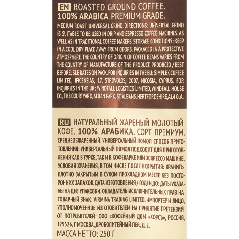 | Тип | Кофе молотый |