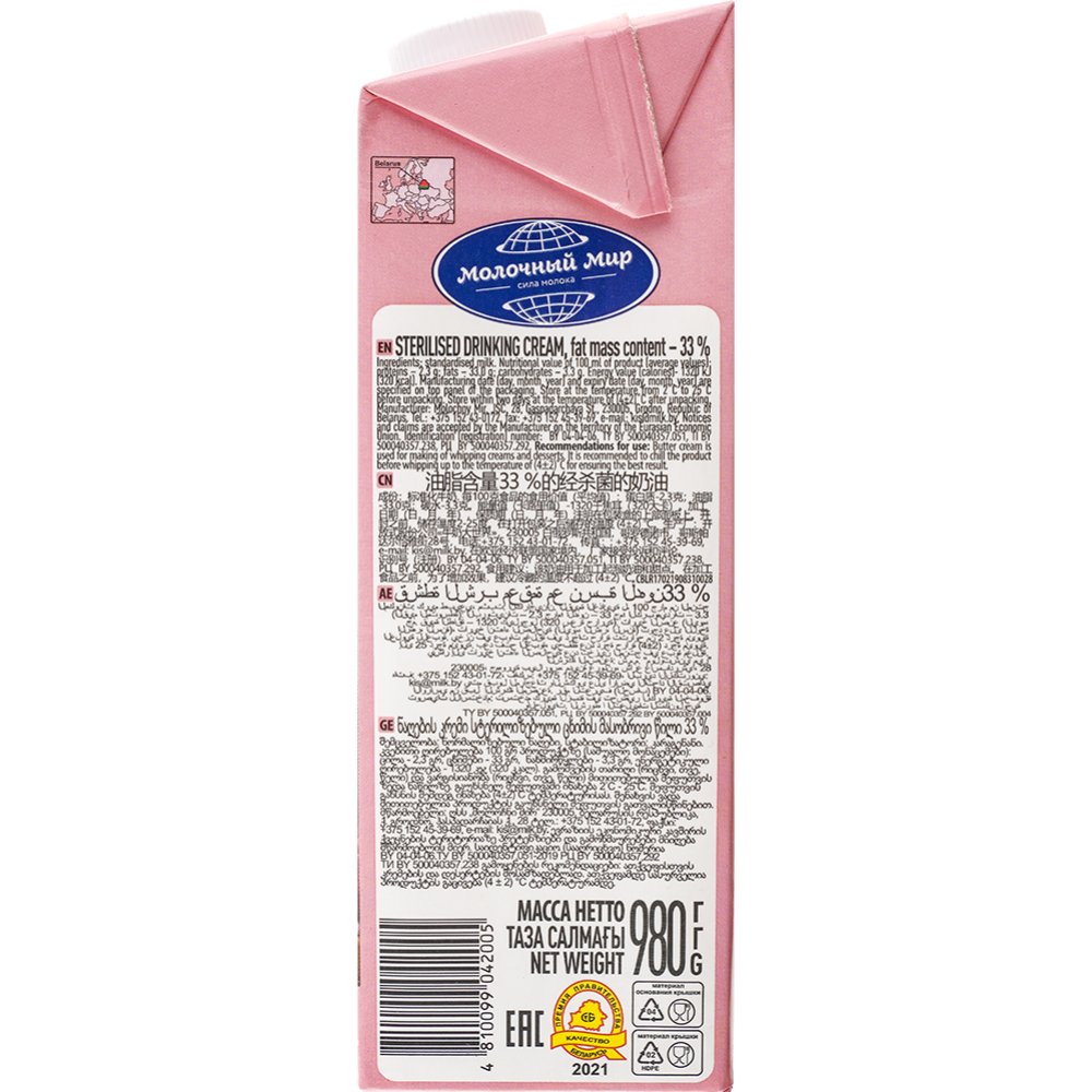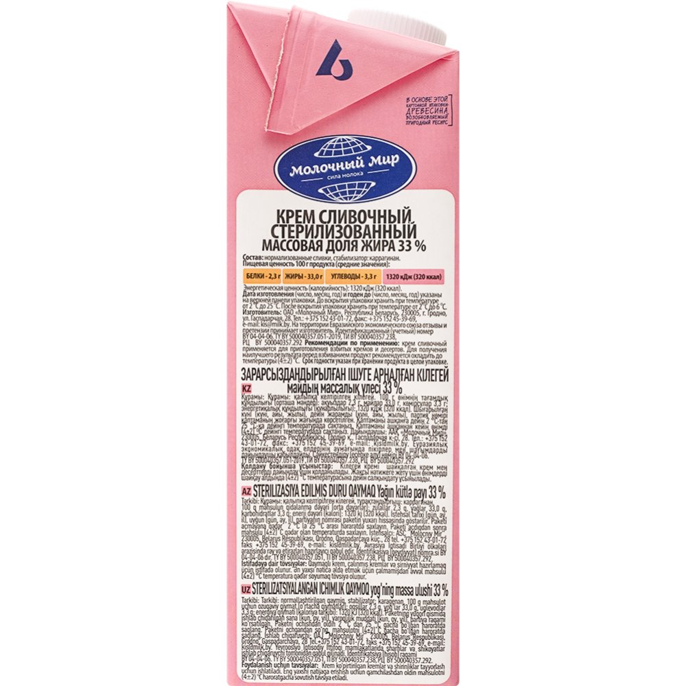 | Производитель | ОАО "Молочный Мир" 230005, г. Гродно ул. Гаспадарчая, 28, Республика Беларусь |