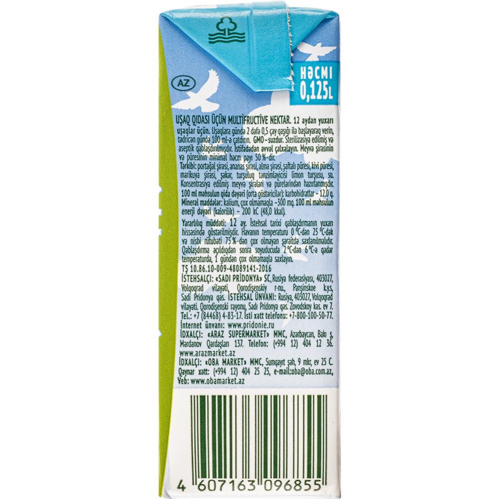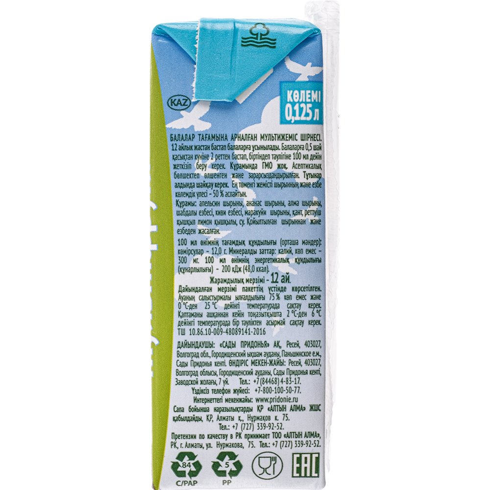 | Состав | апельсиновый сок, ананасовый сок, яблочный сок, персиковое пюре, пюре из киви, сок из маракуйи, сахар, регулятор кислотности - лимонная кислота, вода. Изготовлен из концентрированных соков и пюре. |