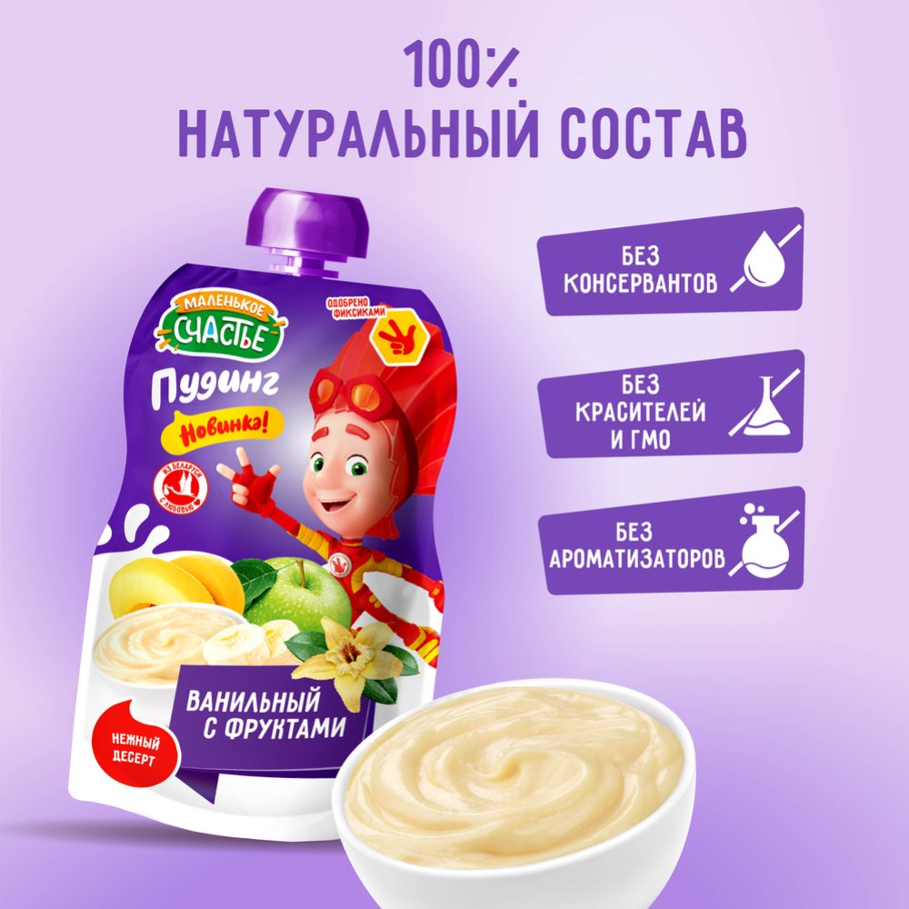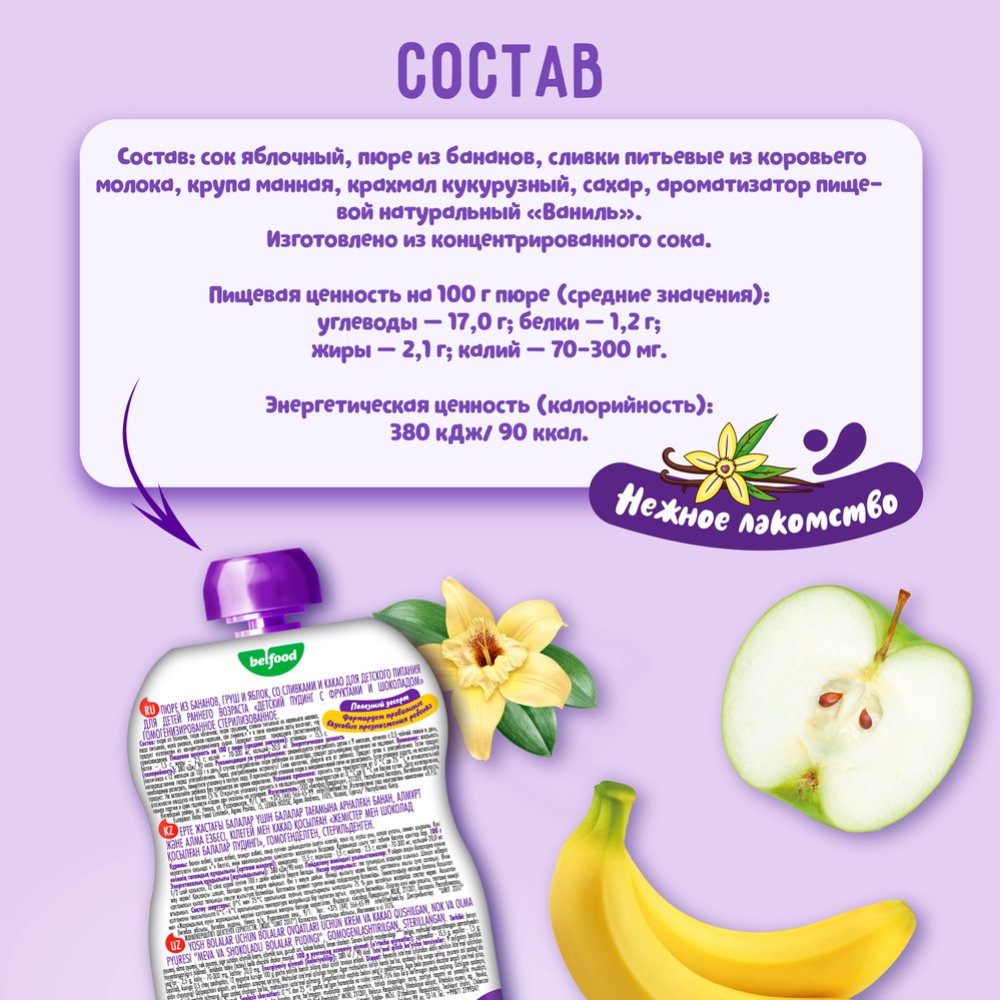 | Состав | Сок яблочный, пюре из бананов, сливки питьевые из коровьего молока, крупа манная, крахмал кукурузный, сахар, ароматизатор пищевой натуральный "Ваниль" |