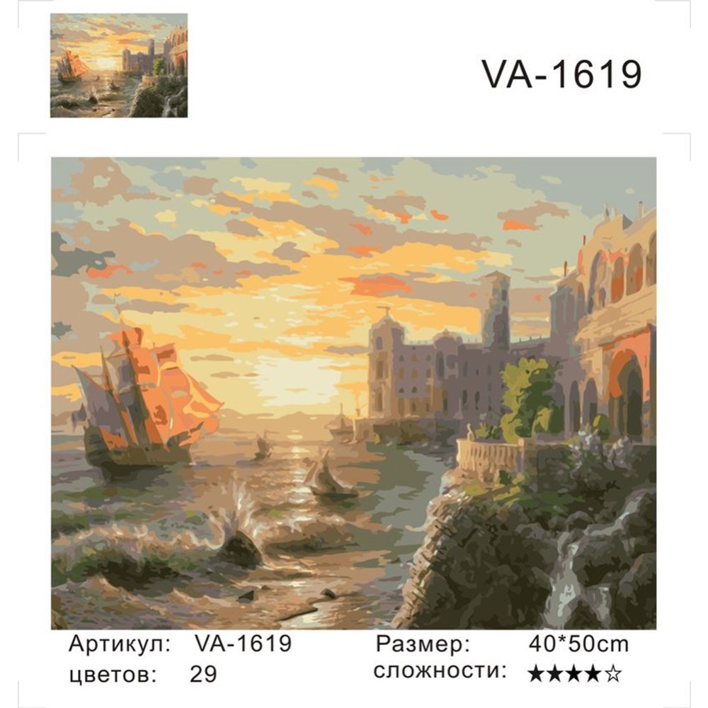 | В комплекте | контрольный лист, холст, краски, кисти, крепление |
