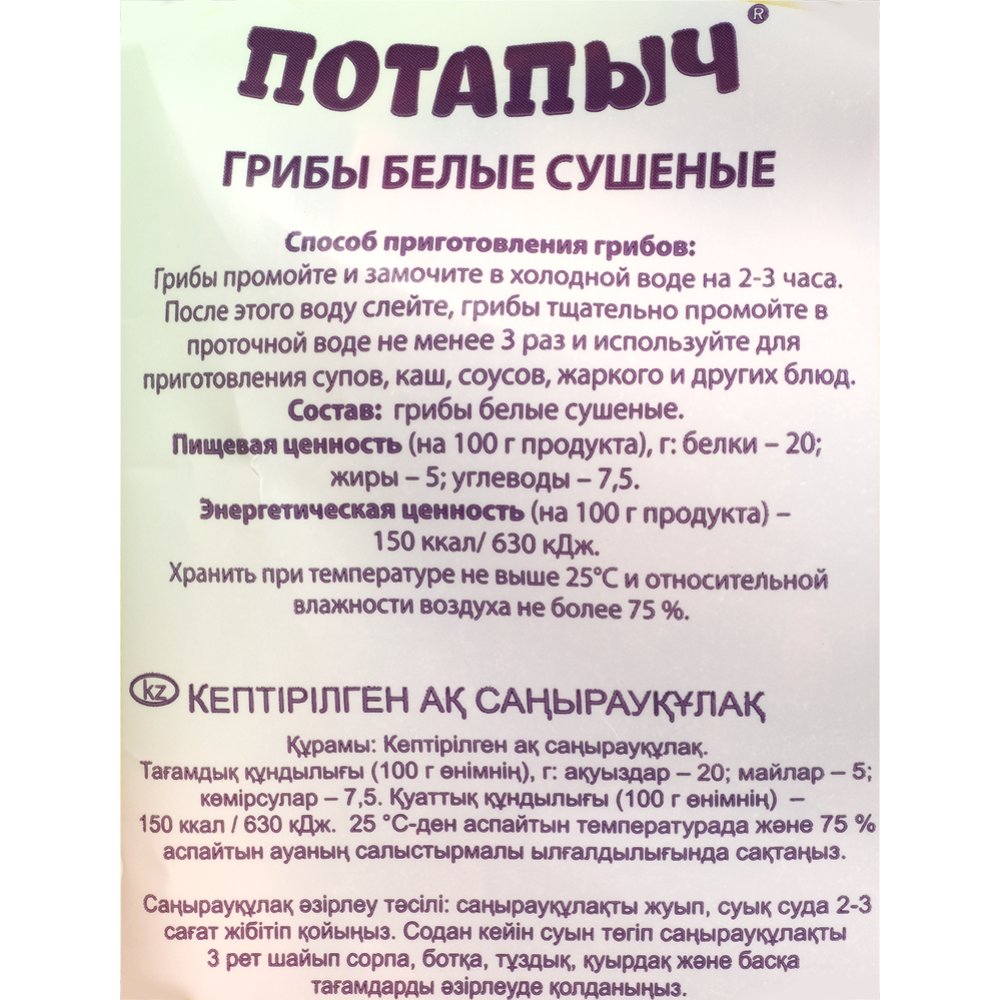 | Состав | грибы белые сушеные. |