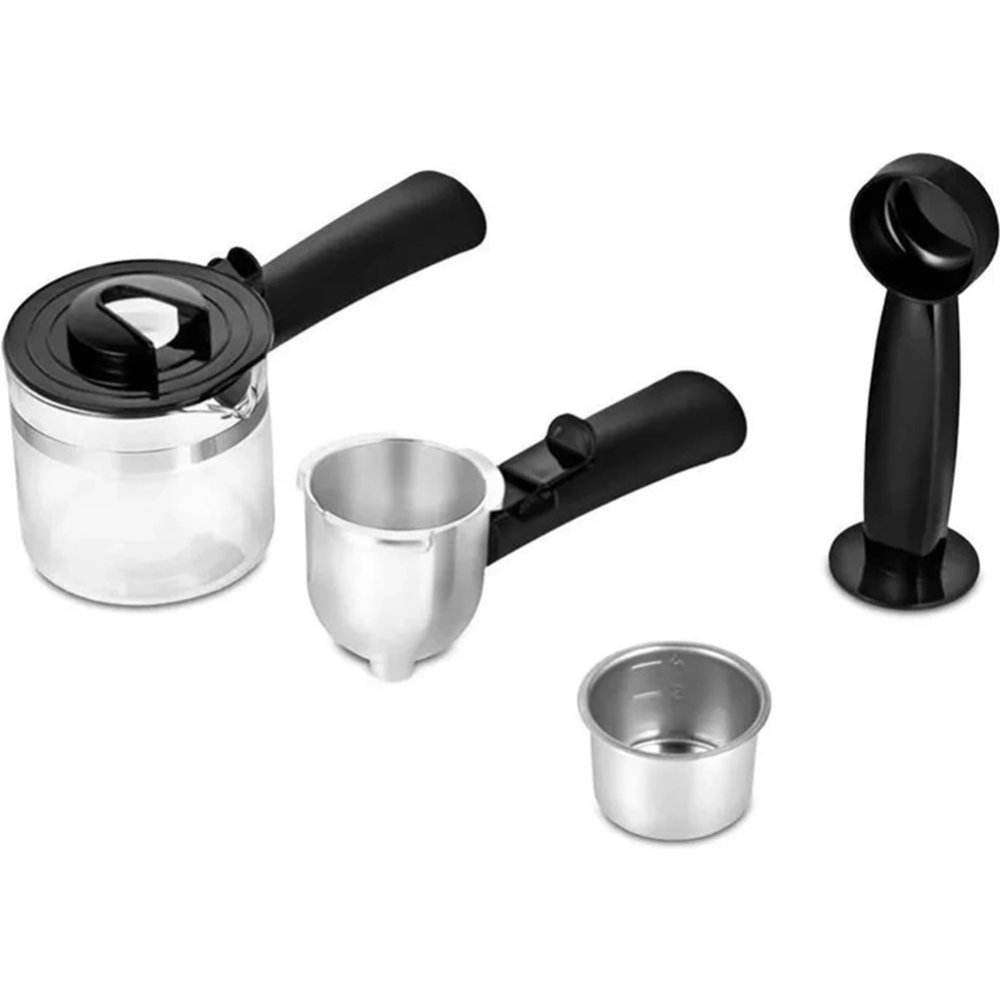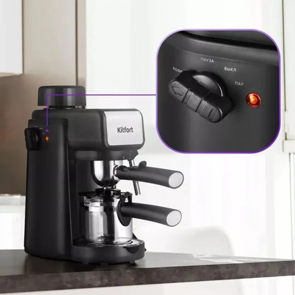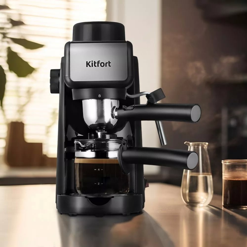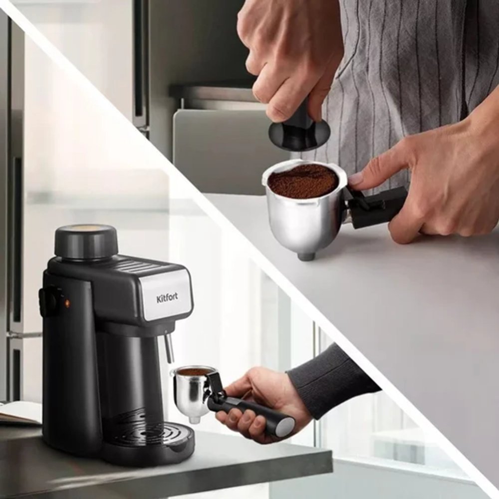 | Краткое описание | Рожковая кофеварка КТ-7259 поможет приготовить до 4 порций эспрессо за один раз, оснащена функцией взбивания молока, а также поможет разогреть напитки горячим паром. Готовый кофе наливается в кружку или специальный кофейник, идущий в комплекте. |