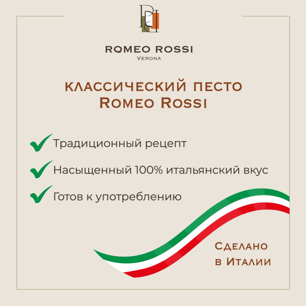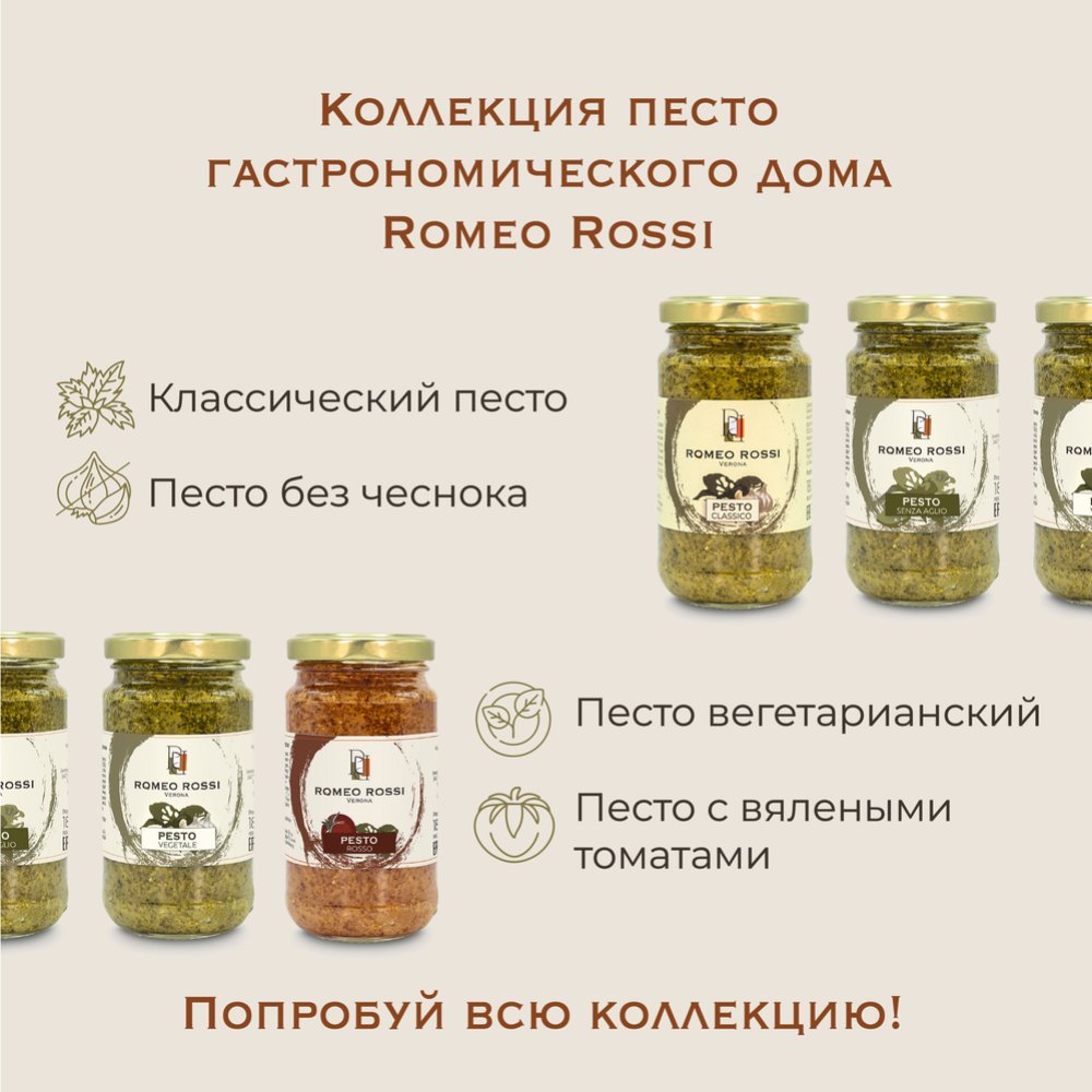 | Краткое описание | "Соус на основе растительного масла ""Pesto Classico"" 180 г. - для приготовления соуса Romeo Rossi «Pesto Classico» мы отбираем только лучшие ингредиенты, которые по достоинству оценят ваши близкие. Сочетание нежного базилика и итальянских трав создает особый сбалансированный, изысканный вкус. Соус Romeo Rossi «Pesto Classico» прекрасно дополнит любое блюдо: пасту, пиццу, сандвичи, рыбу, курицу и овощи. Совет: разрежьте томаты черри на четвертинки и выложите их на тарелку, добавьте соус Romeo Rossi «Pesto Classico», и наслаждайтесь вкусом. " |