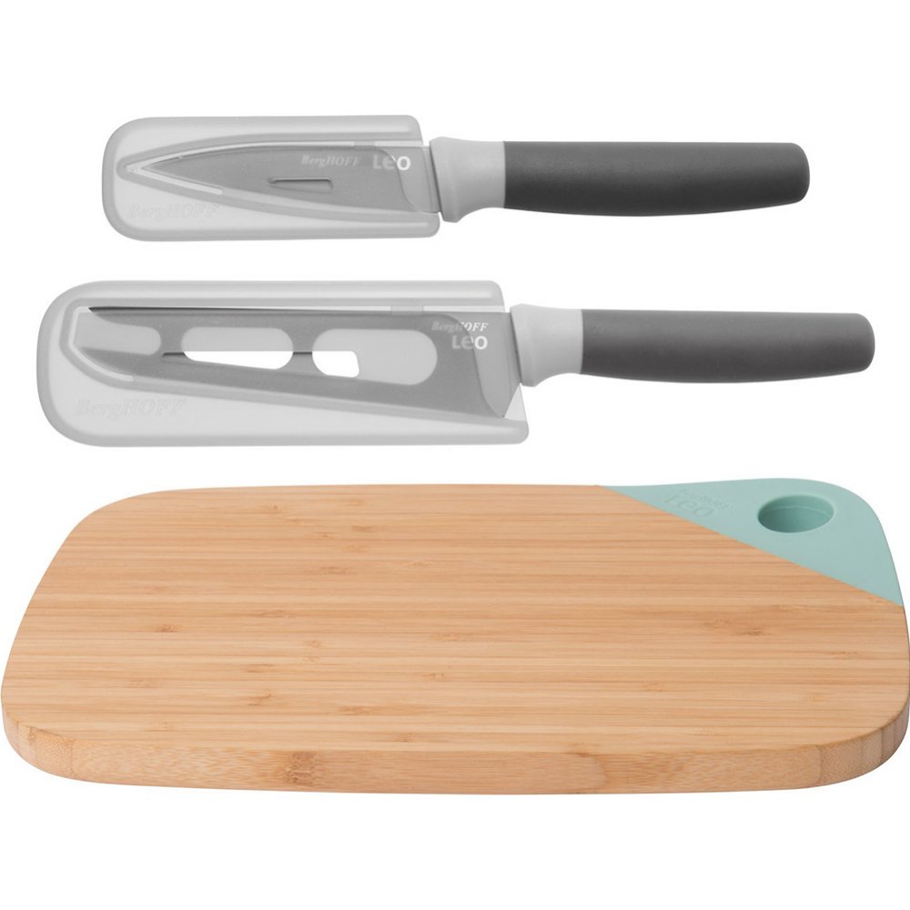 | Краткое описание | Бамбуковая разделочная доска отлично подходит для нарезки самых разнообразных продуктов, но также может быть использована в качестве подноса для холодного мяса и сыра. Сырный нож с отверстиями и специальным покрытием с легкостью справится с нарезкой твердого и мягкого сыра, а удобная вилка на кончике позволит накалывать ломтики и красиво сервировать блюдо. Лезвия ножей изготовлены из нержавеющей стали X30Cr13, ручки — из полипропилена. В комплекте идут защитные чехлы. Рзделочная доска 28х20 см. |