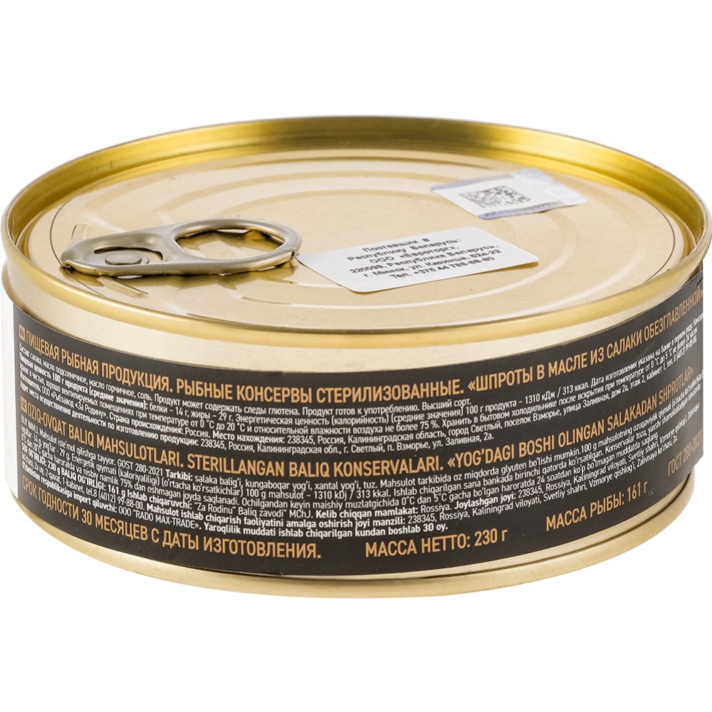 | Производитель | ООО «Рыбзавод «За Родину» 238345, Калининградская обл., г. Светлый, поселок Взморье, ул. Заливная, д. 2а, эт. 2, каб. 1, Россия. |