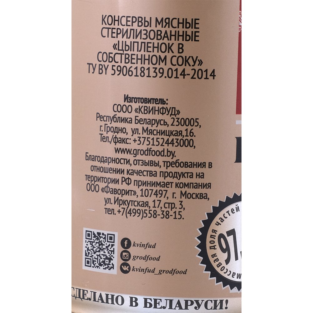 | Производитель | ООО "Квинфуд" г. Гродно, ул. Мясницкая,16, Республика Беларусь. |