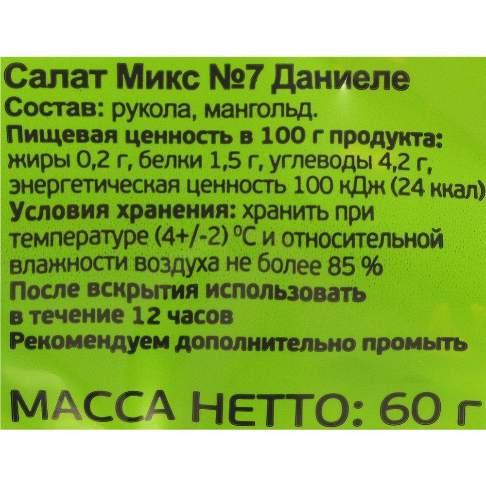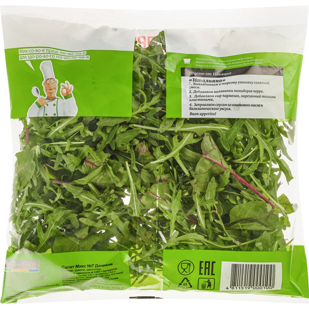 | Краткое описание | Даниеле - один из самых тонизирующих миксов из серии "Правило Салата". Горчично-ореховый вкус руколы сочетается с необыкновенно мягким вкусом мангольда. Микс Даниеле особенно полезен тем, кто заботится о поддержании красоты и здоровья кожи и волос. |