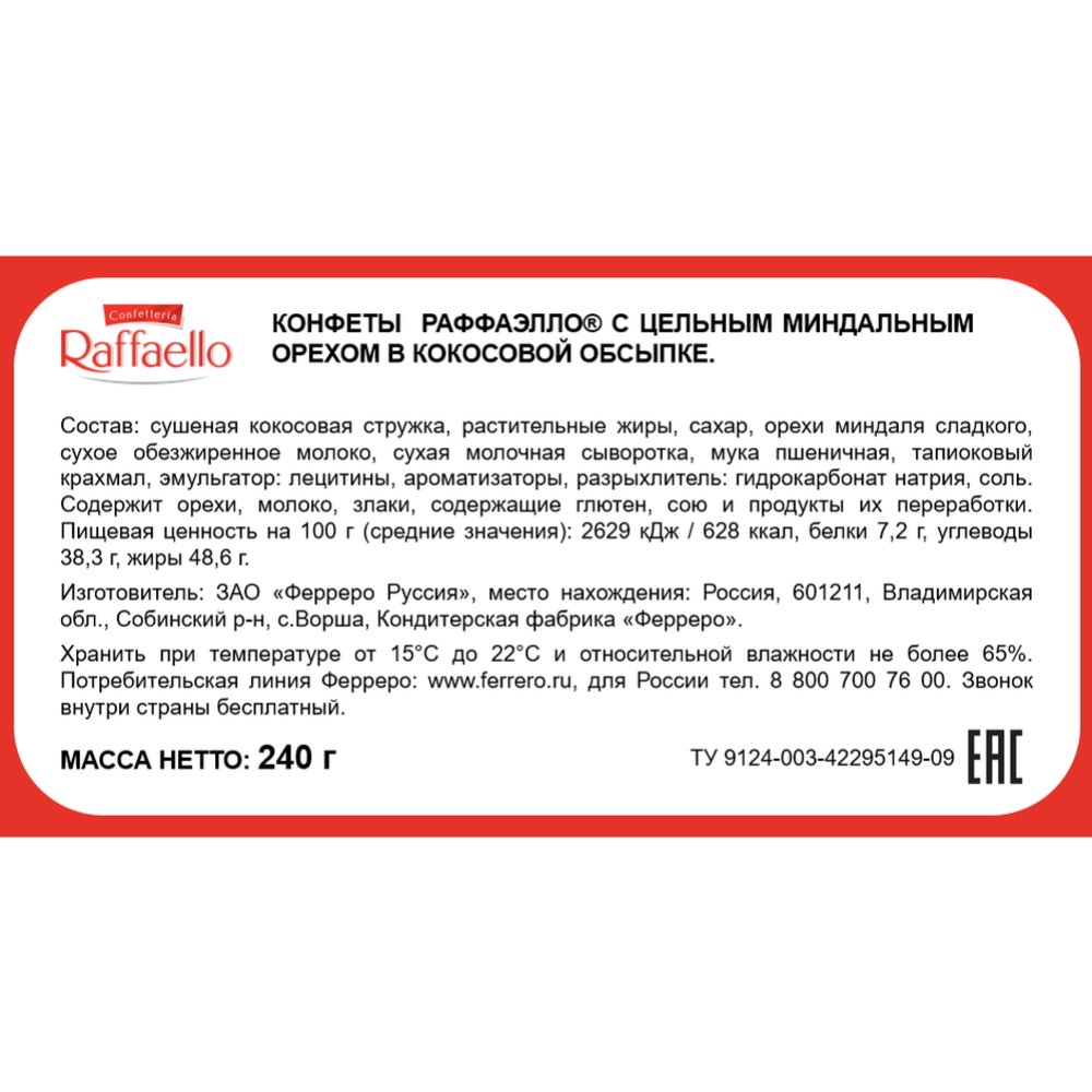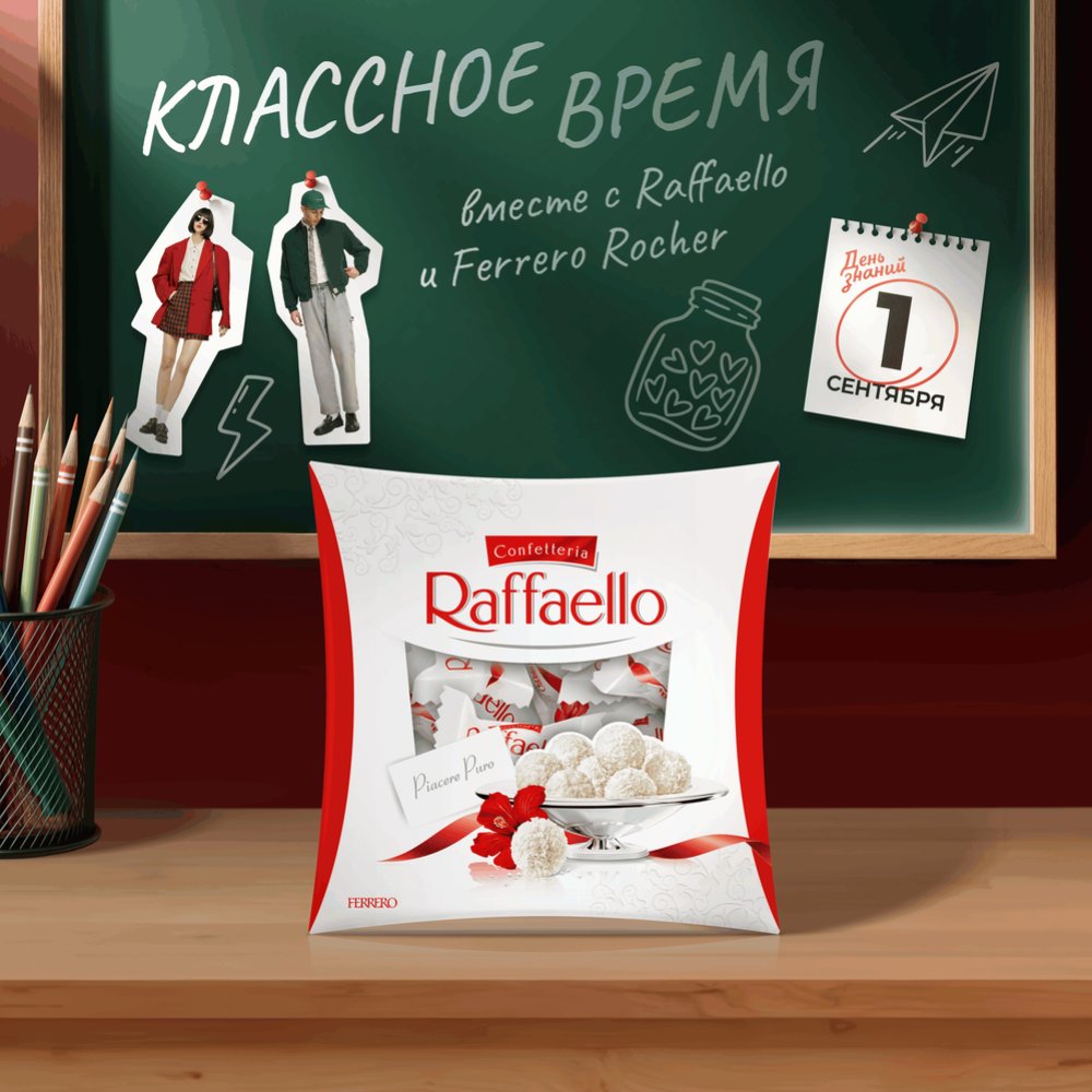 | Краткое описание | Raffaello - любовь в каждом моменте! Каждый момент может стать поводом выразить свою любовь и привязанность. Raffaello - это идеальный способ дать понять вашим близким, как много они для вас значат, ведь каждый момент с Raffaello становится особенным. Конфеты Raffaello - лучший подарок для вашего любимого человека. Уникальный вкус Raffaello - это незабываемые впечатления, которыми можно насладиться в кругу близких или просто весело провести время. Белый хрустящий миндаль, покрытый бархатистой кремовой начинкой и посыпанный нежной кокосовой стружкой придает непередаваемую нежность вкусу. • Для особенного признания в чувствах • Эстетичная и удообная упаковка • Конфеты в подарок • Отборный кокосовый орех • Подходит на перекус • Конфеты с миндалем, кокосовая обсыпка • Лучший подарок на праздник |