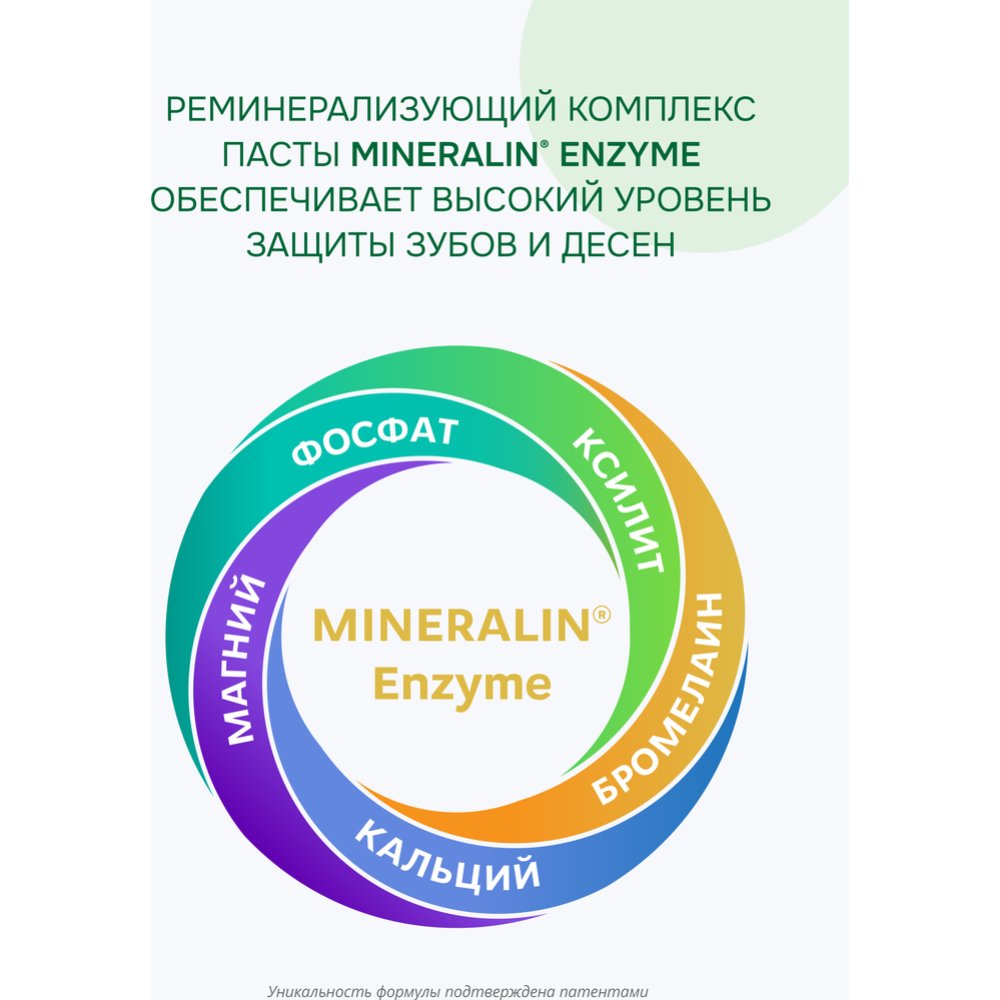 | Краткое описание | Предназначена для постоянного ежедневного использования взрослыми и детьми старше 4-х лет. Обеспечивает высокий уровень комплексной защиты зубов и десен за счет действия БИО компонентов растительного происхождения, активность которых сохраняется благодаря низкотемпературной технологи приготовления зубной пасты. Комплекс MINERALIN®, который состоит из натурального фермента бромелаина, ксилита и минеральных соединений – источников ионов кальция, фосфора и магния, обеспечивает следующие выраженные эффекты применения. |