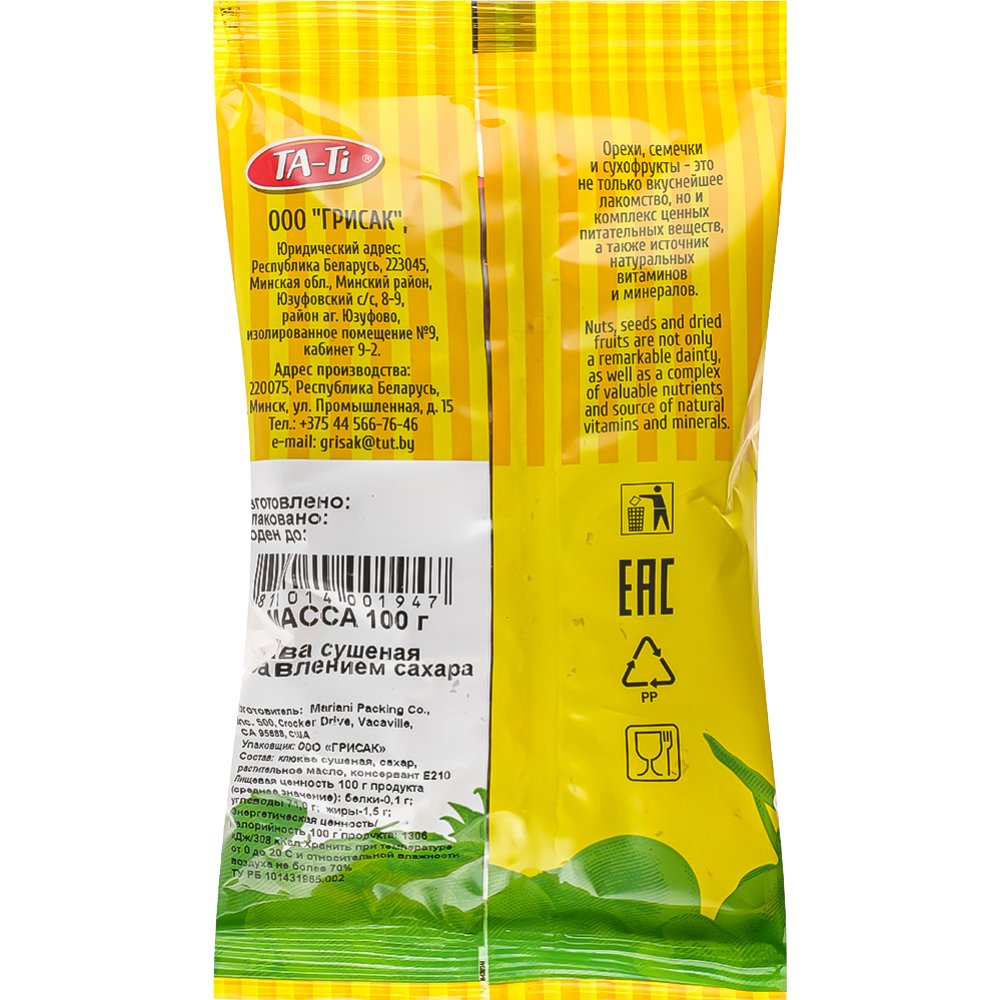 | Тип | Клюква сушеная |