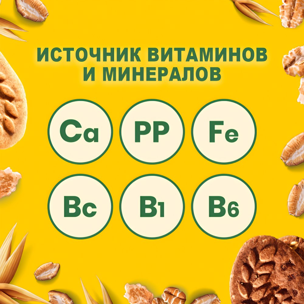 | Состав | мука пшеничная, мука ячменная цельнозерновая, сахар, масла растительные (рапсовое, пальмовое), хлопья овсяные, вода, мед, отруби пшеничные, сироп глюкозно-фруктозный, разрыхлитель (гидрокарбонат натрия), фундук обжаренный дробленный, соль, эмульгатор (лецитин соевый), регулятор кислотности (кислота лимонная ароматизаторы), витаминно-минеральный комплекс (витамин: В1, В2, В6, РР, Вс, железо). Может содержать следы яиц, орехов, молочных продуктов. |