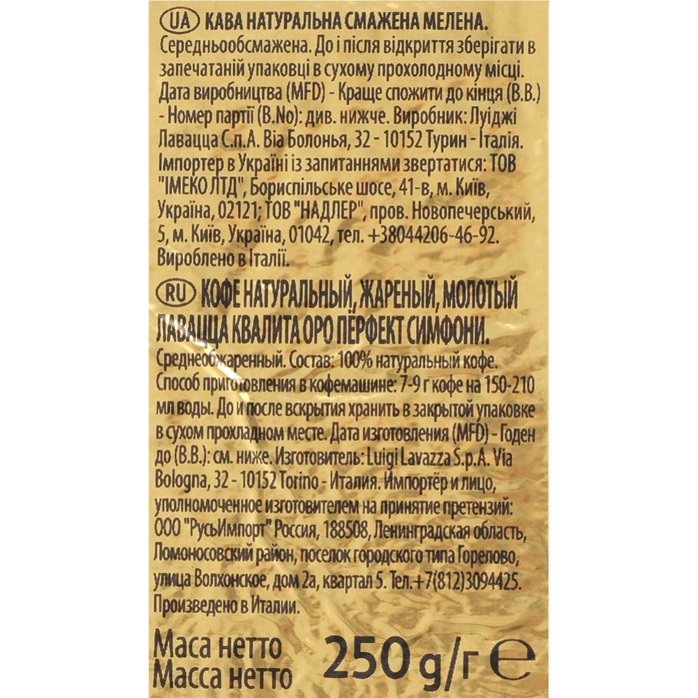 | Дополнительная информация | способ приготовления: для приготовления 1 чашки рекомендуется взять 2 чайные ложки кофе и готовить напиток любым традиционным способом (в турке, кофеварке или с использованием фильтра). Упаковано под вакуумом. |