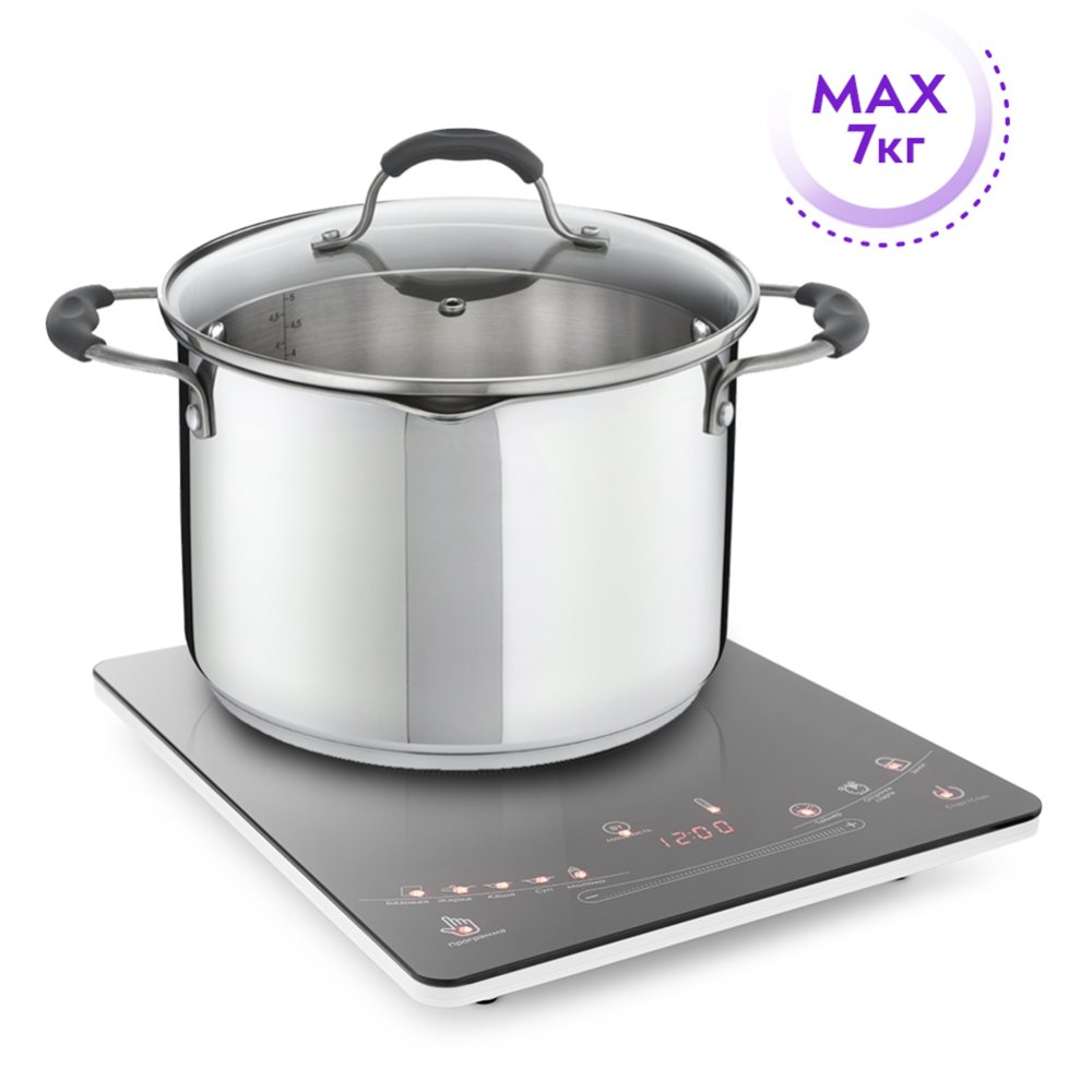 | Краткое описание | Индукционная плита Kitfort KT-106 практична и экономична. Эта плита использует современные технологии, позволяющие готовить ваши любимые блюда вкусно, быстро и абсолютно безопасно. Индукционная плитка практически исключает вероятность получения ожогов, так как рабочая поверхность почти не нагревается во время готовки. Плита имеет программы приготовления "Базовая", "Суп", "Жарка", "Каша", "Молоко", а также таймер времени приготовления и отложенный старт. Для индукционной плиты подходит посуда с дном из ферромагнитных материалов: стальная, чугунная, эмалированная, посуда из нержавеющей стали, а также любая другая, предназначенная для индукционного нагрева. Плита выдерживает вес не более 7 кг. |