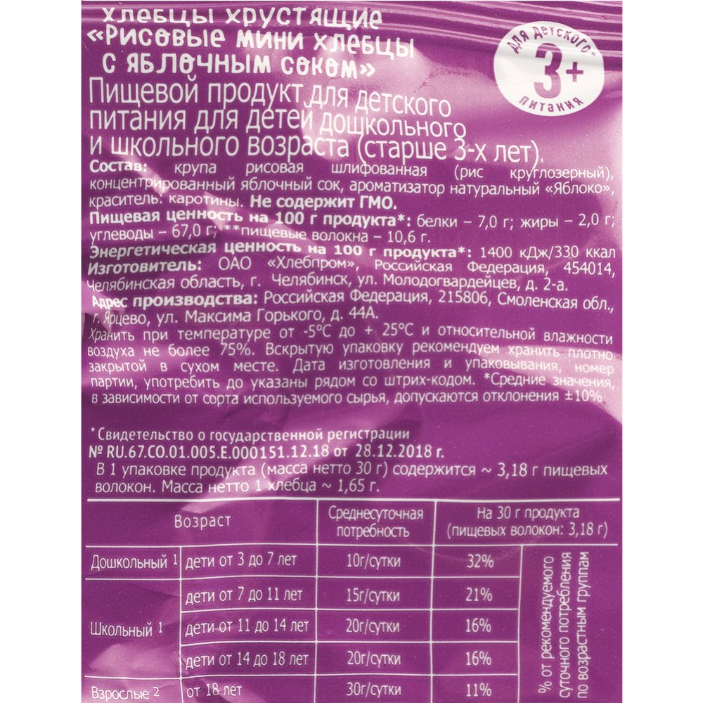 | Краткое описание | Рисовые с яблочным соком. Хрустящие. |
