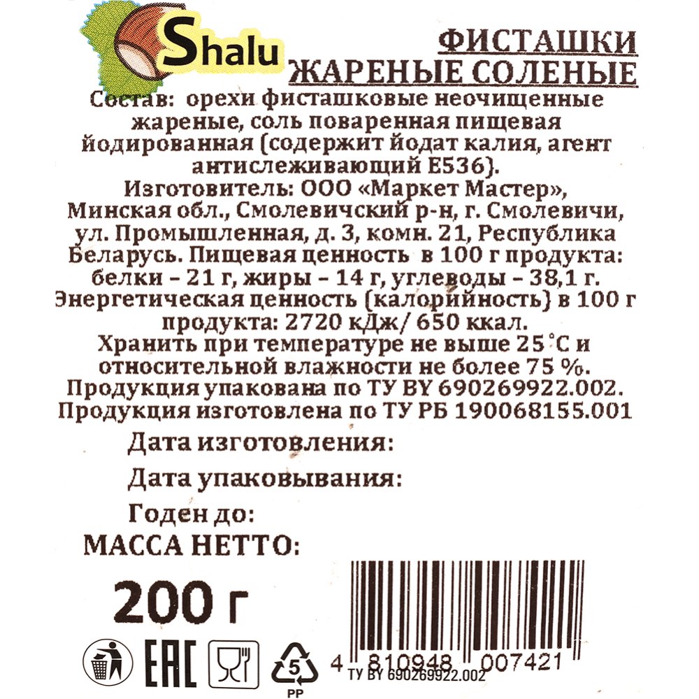 | Состав | неочищенные фисташковые орехи жареные, соль поваренная пищевая йодированная. |
