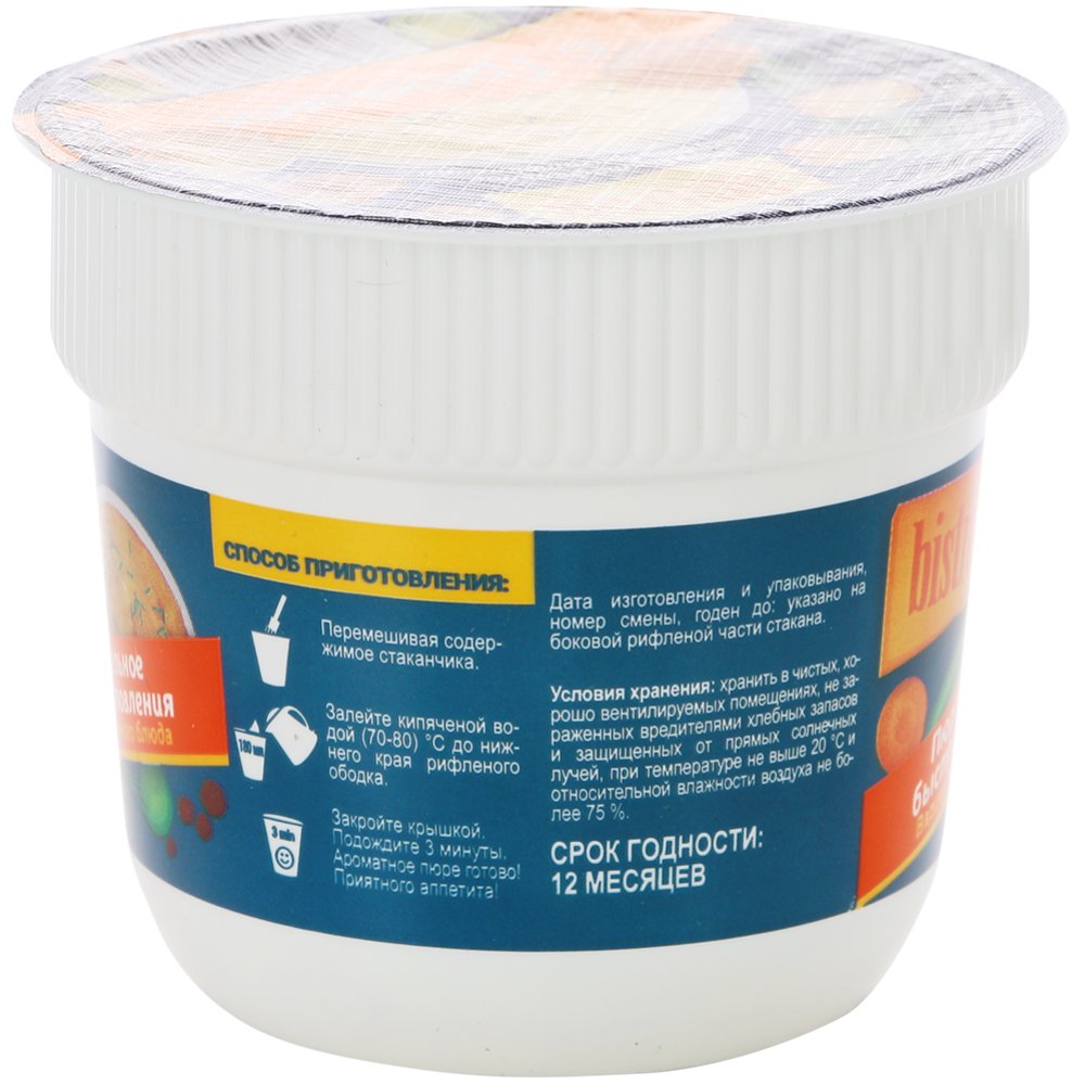 | Состав | хлопья картофельные (картофель 99%, эмульгатор Е471, стабилизатор Е450, антиокислители (Е223, Е304), краситель каротин, регулятор кислотности Е330), гренки пшеничные (хлеб пшеничный, мука пшеничная, соль, дрожжи хлебопекарные, масло растительное), соль, масло растительное, лук жареный (лук репчатый, масло растительное, мука пшеничная, соль), лактоза, молочный протеин, усилители вкуса и аромата (Е627, Е631), антиокислитель Е320. Продукт может содержать следы сои. |