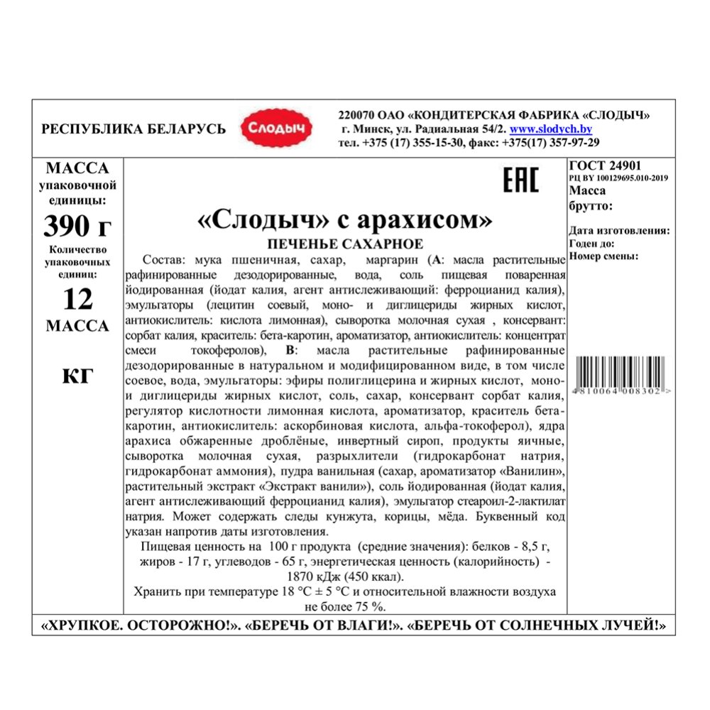 | Производитель | ОАО «Кондитерская фабрика «Слодыч», 220070, г. Минск, ул. Радиальная 54/2, Республика Беларусь. |
